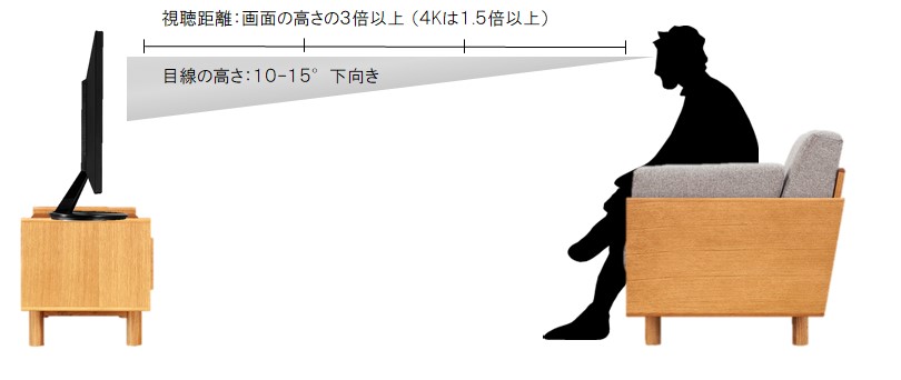 If it is facing upward, extra force will be applied to the neck and shoulders, so the optimum height is such that the center of the TV faces downward by 10-15 degrees (30-50 cm lower).