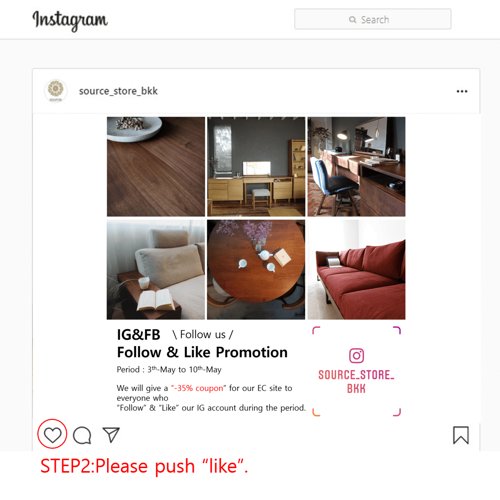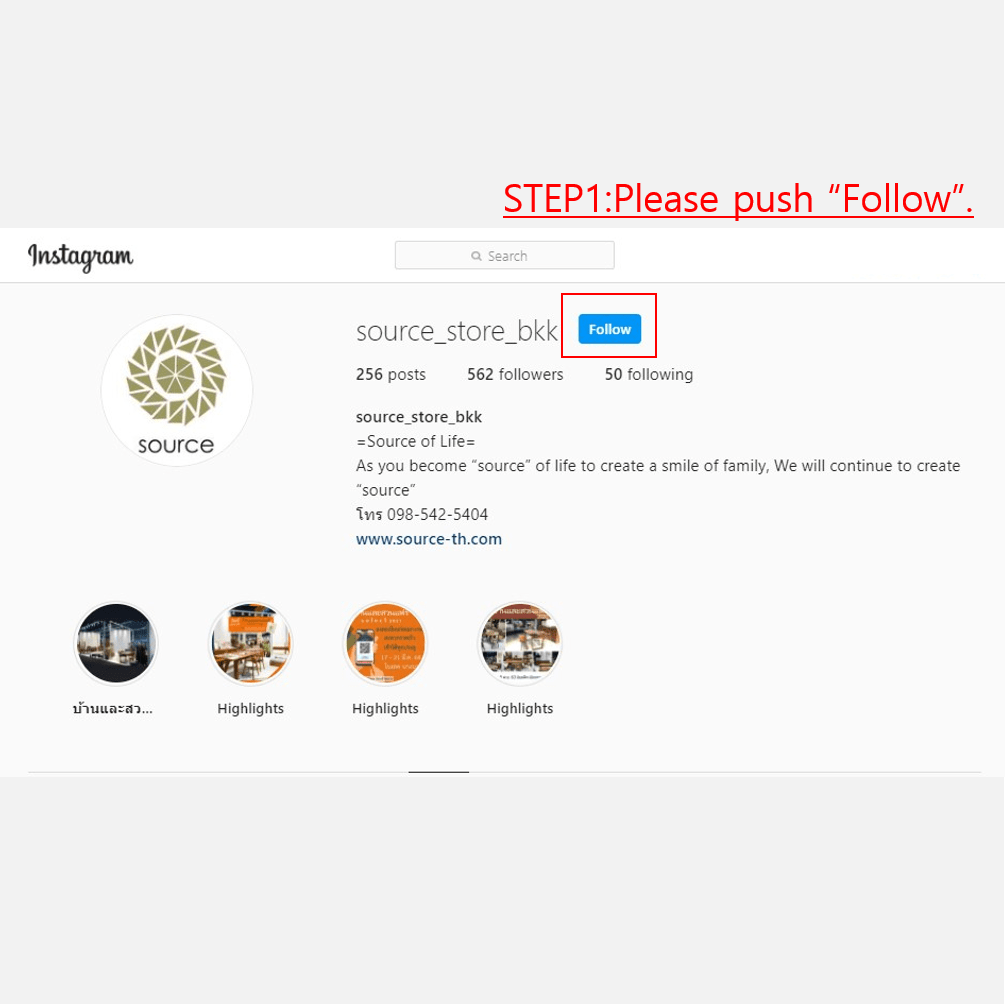 - “Follow” our account. IG : @source_store_bkk FB : Source Store BKK