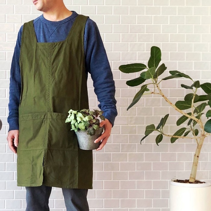 “ผ้ากันเปื้อนที่มีกระเป๋าด้านหน้าและด้านหลัง, ไม่ต้องกังวลอีกต่อไป ถ้าใส่โทรศัพท์ไว้ด้านหน้าแล้วจะเปียก สามารถเก็บไว้ในกระเป๋าหลังได้.
