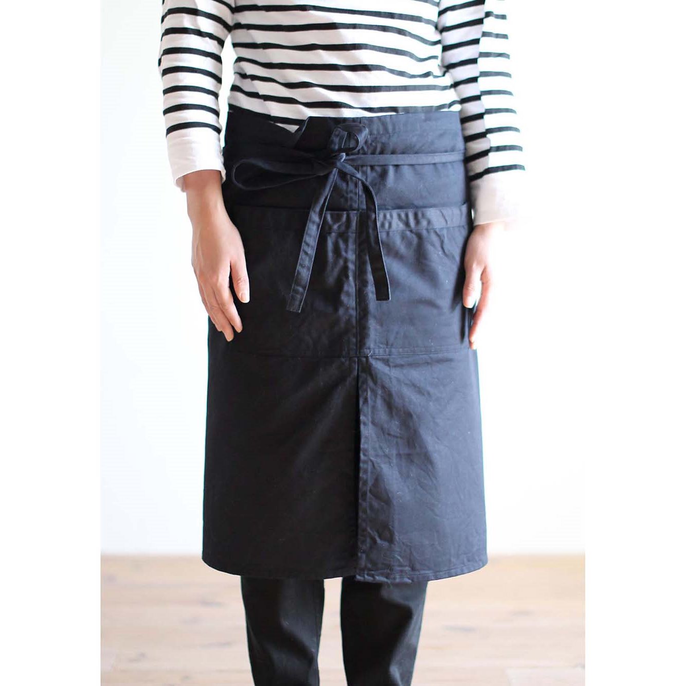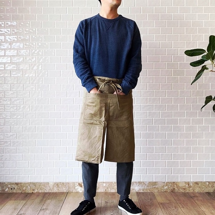 A basic apron with front and back pockets. It don’t have to worry about getting wet by storing smartphone in the back pocket.