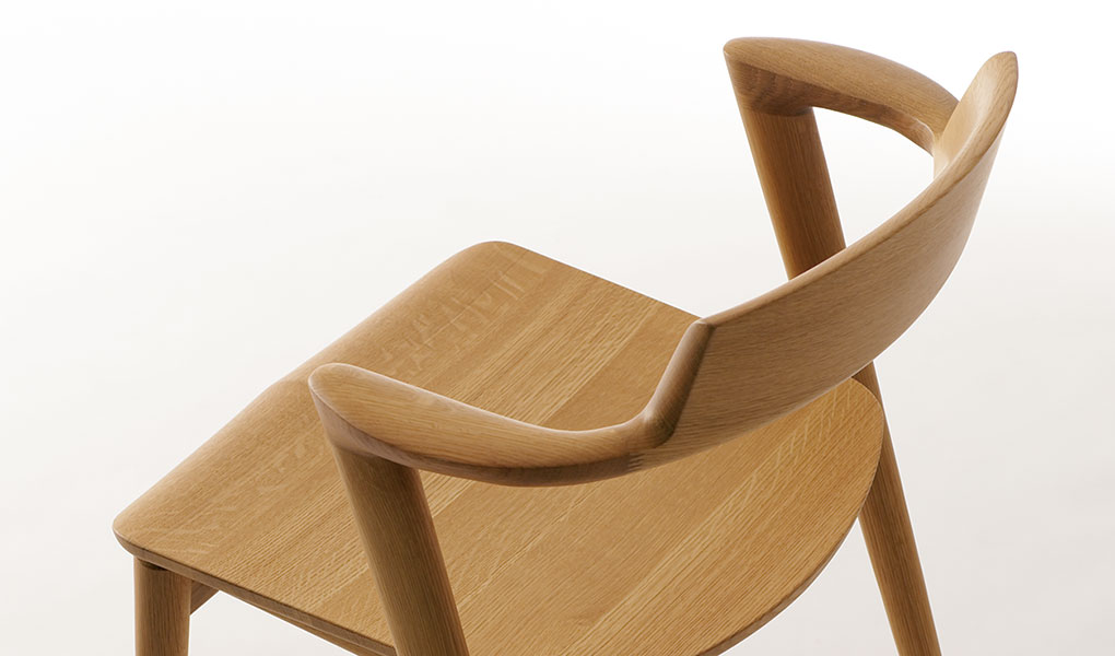 SEOTO chair features a beautiful silhouette that integrates the back , armrests, and back legs.