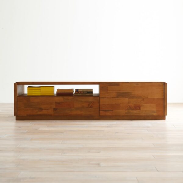 Despite its simple design, the unique wood grain color makes the room stand out. It is designed to neatly store not only AV equipment, recorders, and game consoles, but also small items.