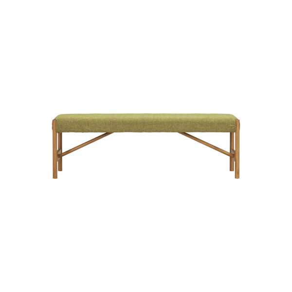 A bench with round legs that is casual and cute.