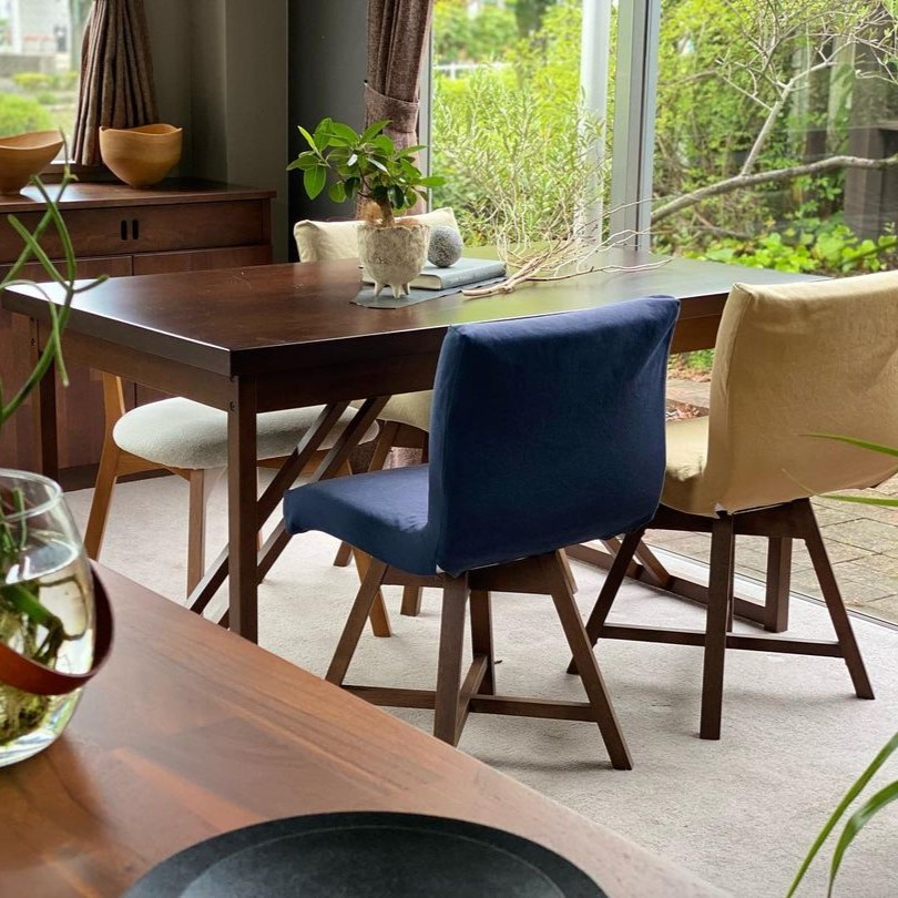 Calm color of Siam mahogany material that allows you to relax naturally, and the legs are unified to 28mm material, and the reinforcement part that is diagonally crossed is combined to create a unique design. The depth of the table is 77 cm, and the design is slightly narrower so that it does not give a feeling of oppression to the room.