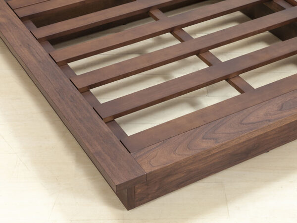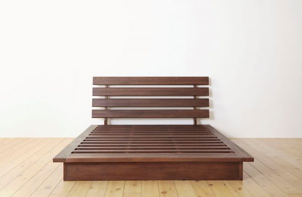 Bed frame featuring a headboard that uses plenty of high-quality solid walnut and gives a beautiful wooden texture. Using solid wood and veneer luxuriously, the finish makes use of the original texture of wood.