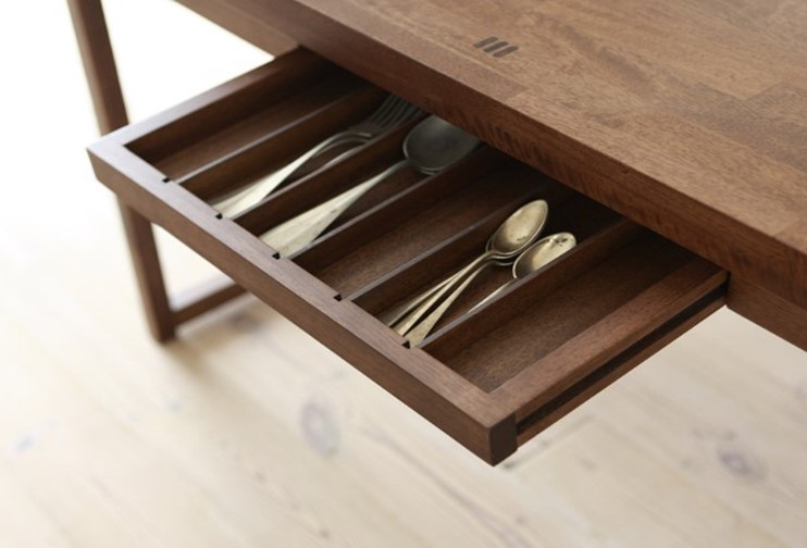 ถาดวางช้อนส้อมยังติดอยู่ใต้ท็อปโต๊ะ ทำให้ง่ายต่อการเตรียมอาหารเย็นหรือมื้อกลางวัน