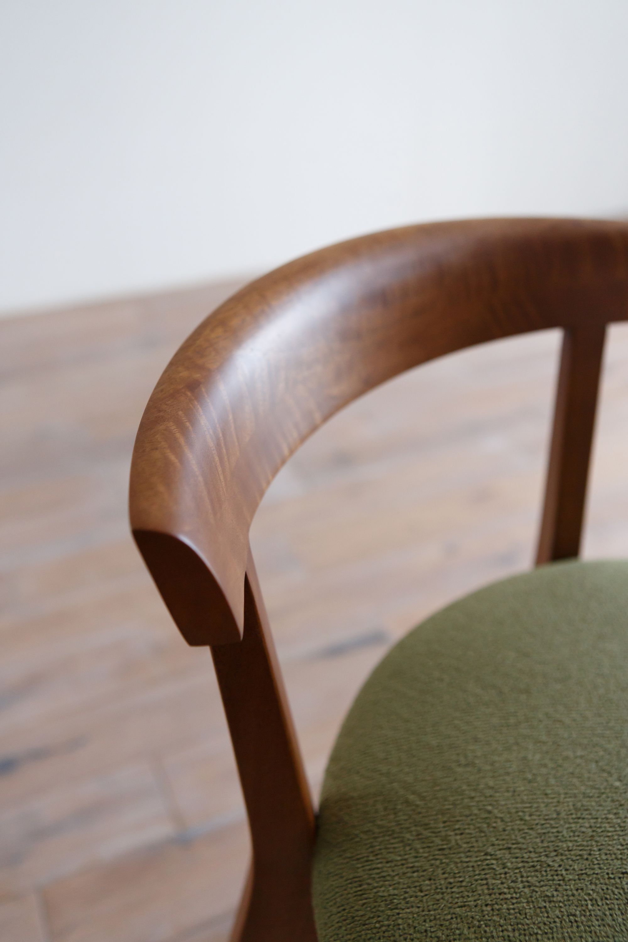 The curve of the backrest draws an arc that fits the back of a person, so it is comfortable to wear, and it is very light, so it is easy to move. Incorporating design features originating from the Flanders region, we use beautiful wood with unique eyes called Belize to create a sense of luxury.