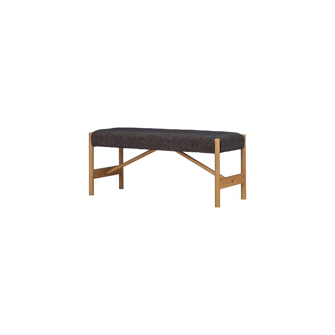 A bench with round legs that is casual and cute.