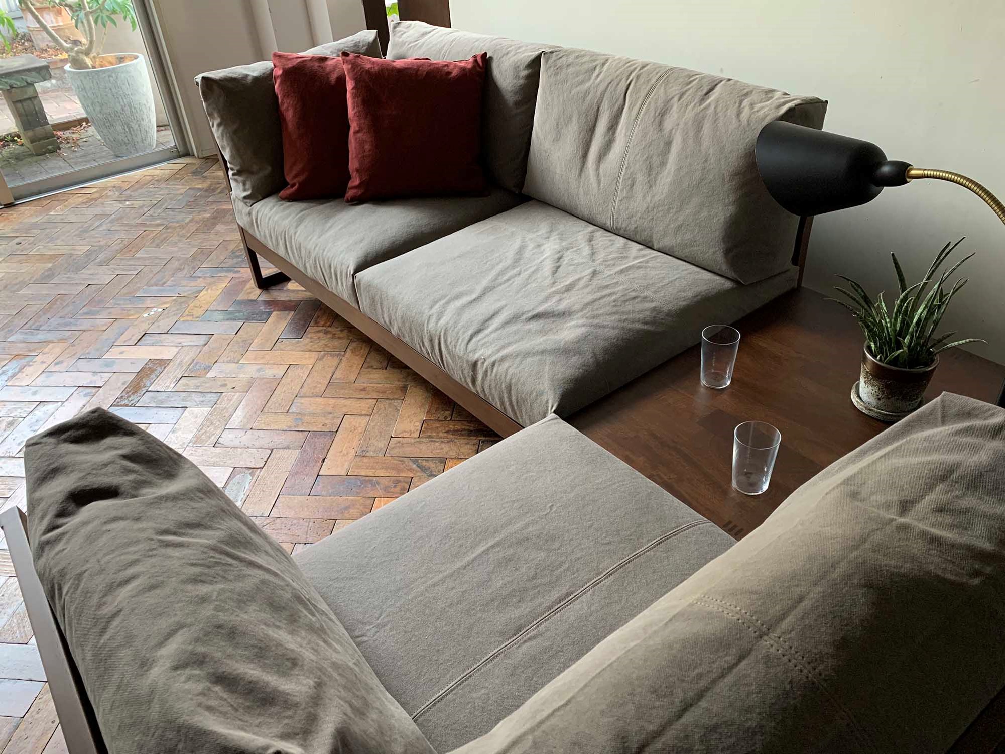 The TOCCO Low Center Table 077 can be placed in the corners that tend to be dead spaces, and used as a side table to make effective use of the space. By laying out the sofa in the corner along the wall, you can secure a wide aisle and create a visually spacious living room. The layout of the sofa is not only L-shaped, but if you put TOCCO One Arm Sofa 083L and TOCCO One Arm Sofa 160R side by side, you can use it as a spacious three-seat sofa, and you can flexibly change it according to the scene.