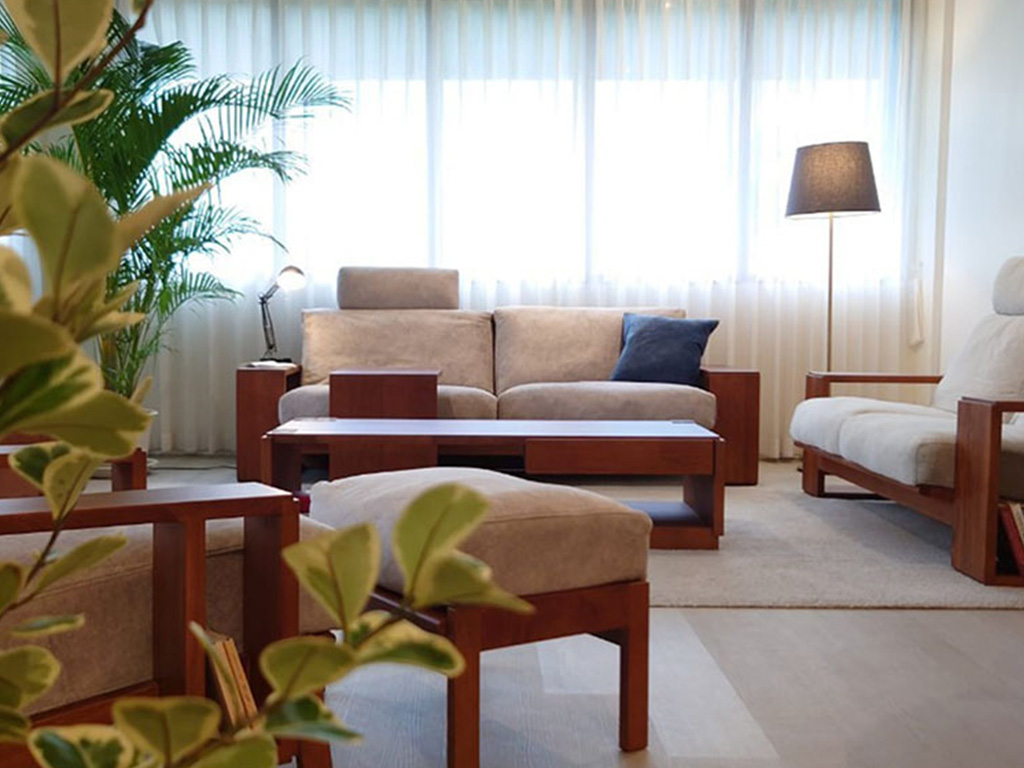 This design ensures that the furniture fits seamlessly into limited Japanese homes, creating a comfortable living space with the gentle warmth of wood.