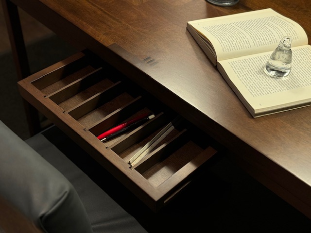 Also this table has a drawer in the center, so you can store small items such as stationery and gadgets that tend to get messy.