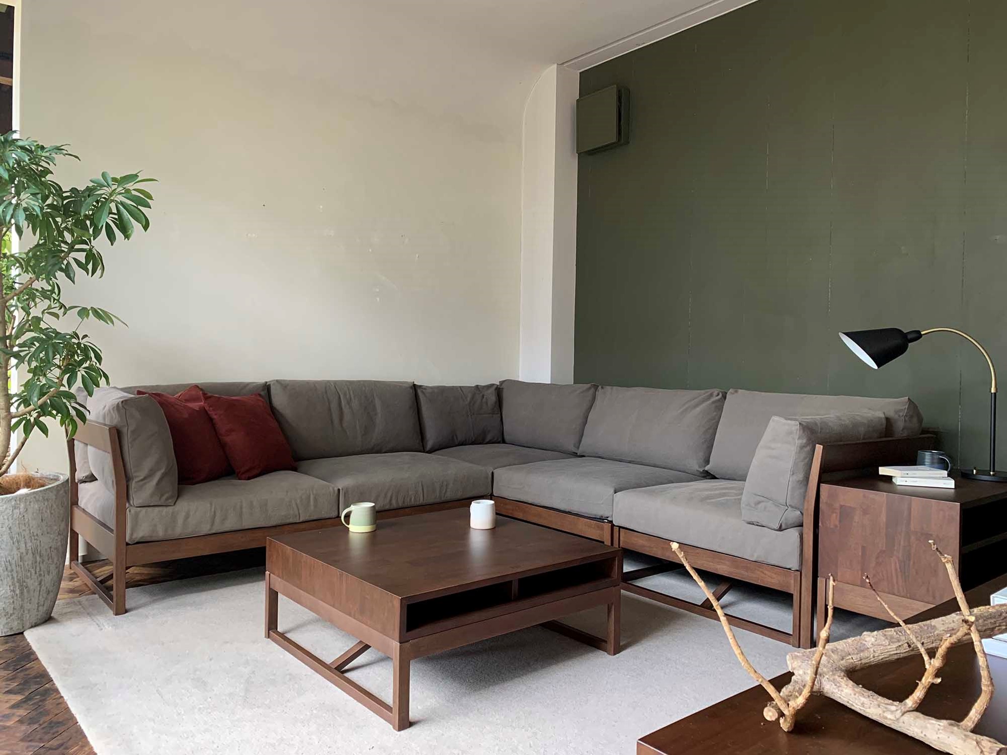 The TOCCO Low Center Table 077 can be placed in the corners that tend to be dead spaces, and used as a side table to make effective use of the space. By laying out the sofa in the corner along the wall, you can secure a wide aisle and create a visually spacious living room. The layout of the sofa is not only L-shaped, but if you put TOCCO One Arm Sofa 083L and TOCCO One Arm Sofa 160R side by side, you can use it as a spacious three-seat sofa, and you can flexibly change it according to the scene.